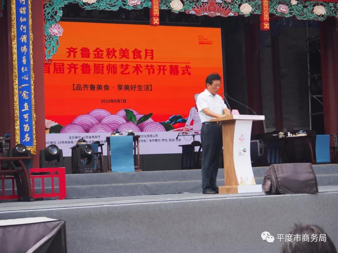 2019年9月7日,山东省“齐鲁金秋美食月”消费促进活动暨首届齐鲁厨师艺术节开幕仪式在青岛市即墨区即墨古城举办。省商务厅副厅长王洪平、青岛市商务局副局长郭健、即墨区区长吕涛、山东省烹饪协会会长贾富源等出席了会议。青岛各区市商务局分管领导、相关科室负责人、餐饮协会负责人、知名餐饮企业负责人参加了会议。